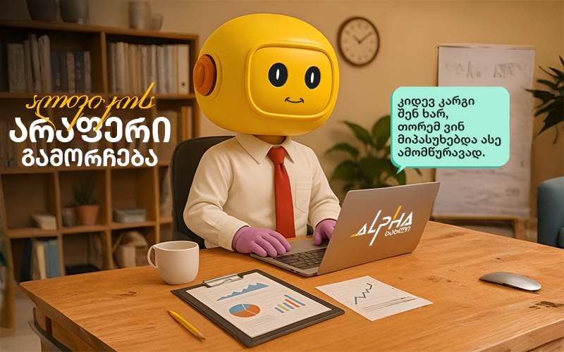 სამშენებლო კომპანია "ალფა სახლმა" საიტზე ჩააინტეგრირა AI ჩატბოტი, რომელიც უძრავი ქონების შეძენით დაინტერესებულ პირებს ყველანაირ კითხვაზე სცემს პასუხს. ან თუნდაც ახლა რომ არ გეგმავდე ბინის შეძენას, მაგრამ უბრალოდ გაქვს კითხვები სამშენებლო ინდუსტრიასთან დაკავშირებით, შეგიძლია მიმართო მას და გაგცემს პასუხს ყველა იმ კითხვაზე, რომელიც გაქვს. მას შეუძლია ჩაგინიშნოს შეხვედრა გაყიდვების მენეჯერთან და გთავაზობს უფასო კონსულტაციას მასთან. ადრე ამას ძალიან დიდი ადამიანური რესურსის ხარჯზე აკეთებდა კომპანია "ალფა სახლი", თუმცა დღევანდელ დღეს უკვე ჩატბოტს შეუძლია მარტივად შექმნას ის, რაც აქამდე მოითხოვდა მეტ ძალისხმევას.